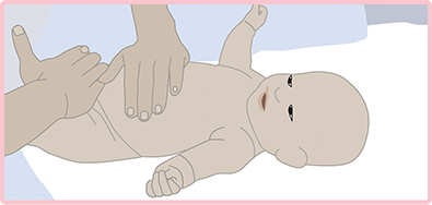 Lie baby on her tummy and place your hands flat on the top of her back. Then move your hands up and down baby’s back in an alternate, back and forth motion.